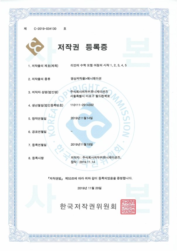 [한국/저작권] 리안의 수학 모험 여정의 시작 1,2,3,4,5 페이지 정보 작성자 WeDu 댓글 0건 조회 4,449회 작성일 21-12-31 12:36 본문 2019-11-20 저작권 C-2019-034130 영상저작물>애니메이션 List Previous[한국/저작권] OLL KIDS/MATH 21.12.31 Next[한국/저작권] 리안의 수학 모험 애니메이션 OST 19.11.25
